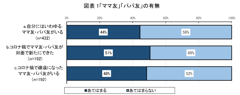 2022年の第一生命経済研究所によると、ママ友の有無を尋ねた調査ではなんと56%もの親が「ママ友・パパ友がいない」と回答しました。