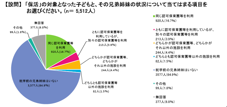 「未就学のきょうだい児がいる」という家庭だけに絞って考えると、実に31%の割合の方が、きょうだい別々の園に通っていることになります。3割って結構多いですよね。